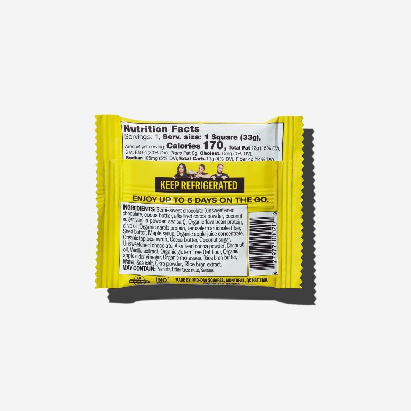 Semi-Sweet Chocolate (Unsweetened Chocolate, Cocoa Butter, Alkalized Cocoa Powder, Coconut Sugar, Vanilla Powder, Sea Salt), Organic Fava Bean Protein, Olive Oil, Organic Carob Protein, Jerusalem Arti…