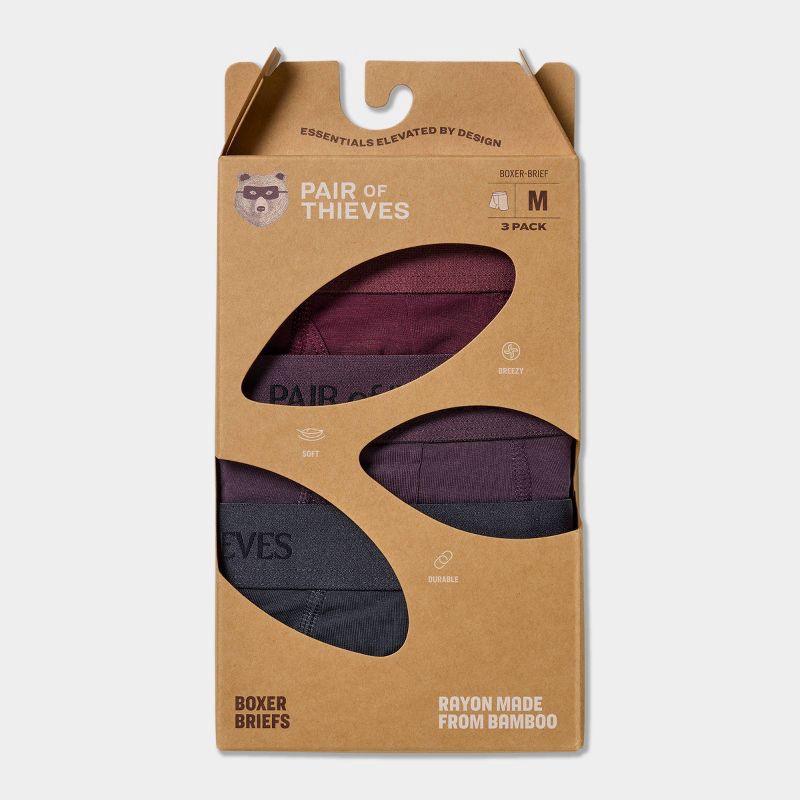 Pair of Thieves Men's Rayon Made From Bamboo 3pk Boxer Briefs - Wine XL