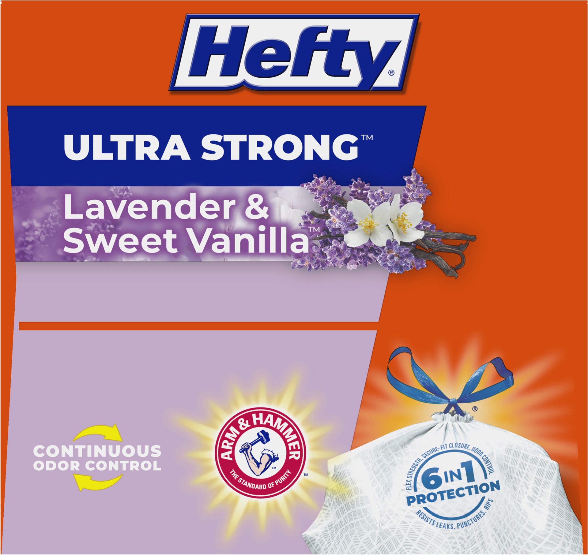 Hefty Trash Bag Tall Drawstring Ultra Strong Lavender & Sweet Vanilla - 40 Count