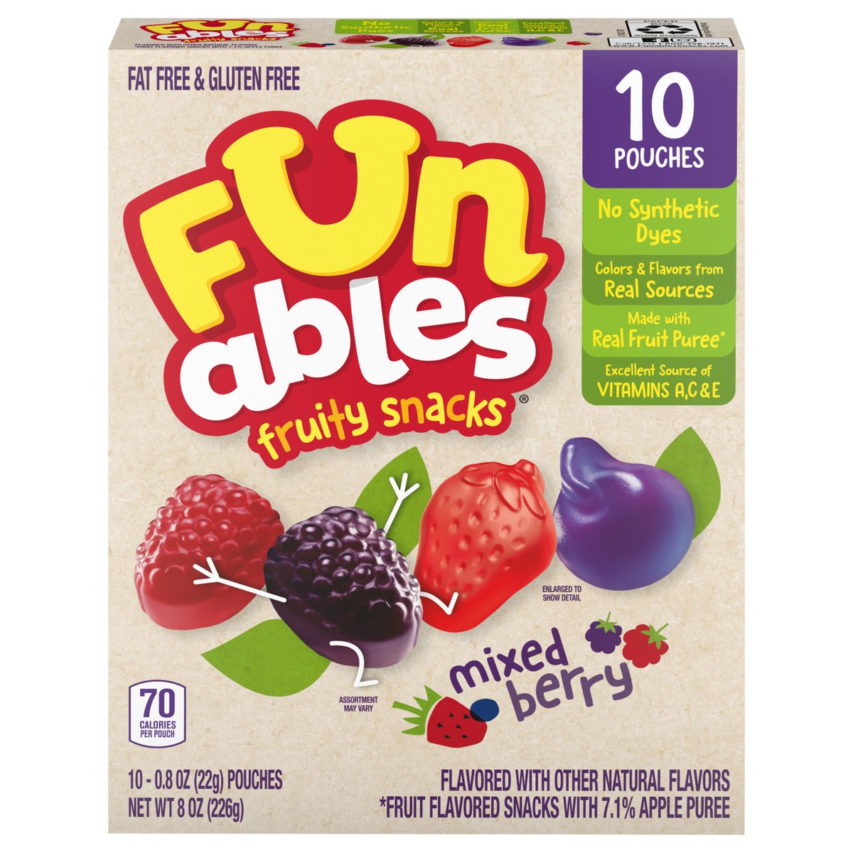 - FRUITY SNACK PLANS COME TOGETHER: This pack of Funables Mixed Berry Fruity Snacks includes 10 individually wrapped 0.8 oz pouches of fruity snacks