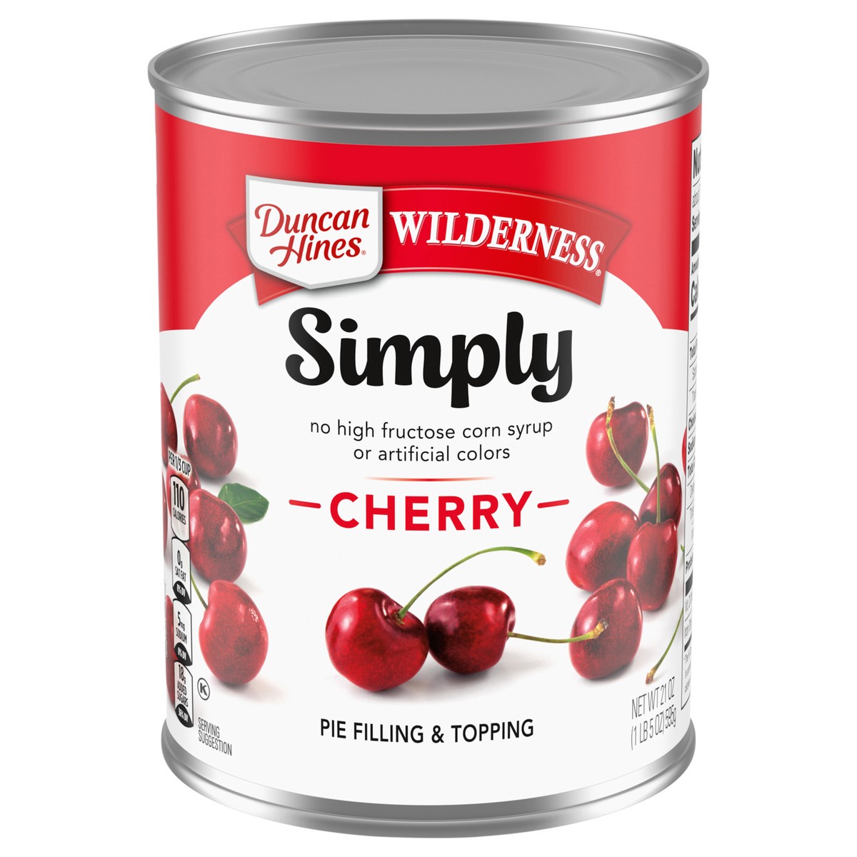 Bring homemade-style flavor and easy convenience to your kitchen with Duncan Hines Wilderness Cherry Pie Filling and Topping. Juicy canned cherries deliver sweet, fruity taste and a luscious, rich tex…