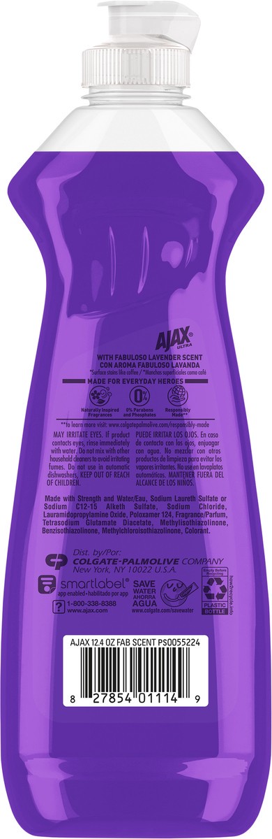 Ajax Ultra Liquid Dish Soap with Fabuloso Lavender Scent, Deep Cleaning Action, 12.4 Oz. Bottle