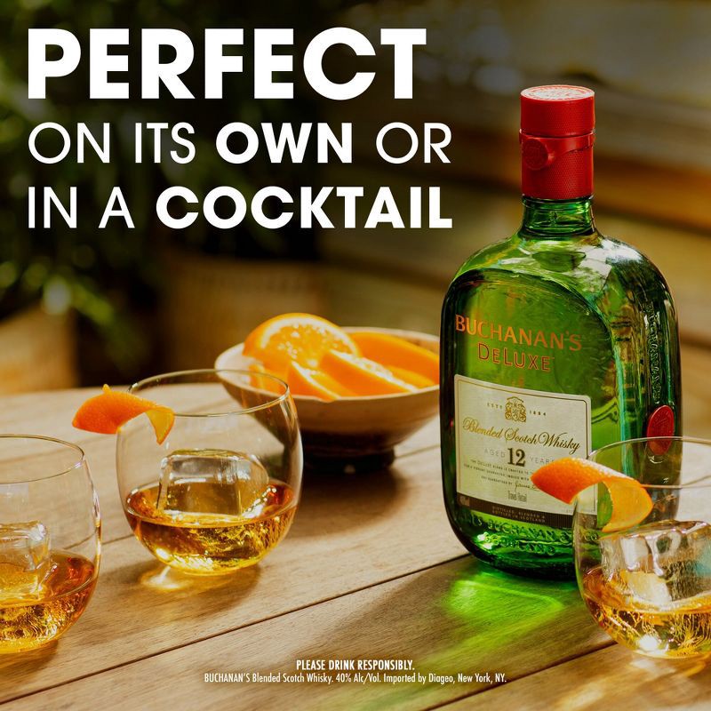 - Includes one 750 mL bottle of Buchanan's DeLuxe Aged 12 Years Blended Scotch WhiskyBuchanan's DeLuxe Aged 12 Years Blended Scotch Whisky was awarded a Double Gold Medal in 2025 at the San Francisco World Spirits Competition80 ProofPerfect as a gift or for any celebrationFeatures notes of citrus fruits and honey for a sweet, smooth flavorBest enjoyed in a BuchanitaAged 12 yearsFeatures notes of citrus fruits and honey for a sweet, smooth flavorBest enjoyed in a Buchanita
