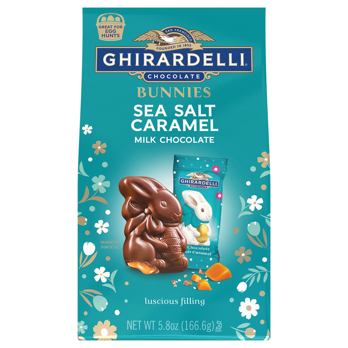 Experience the delicious, high-quality flavor of GHIRARDELLI Sea Salt Caramel Milk Chocolate Bunnies this Easter. These bunny-shaped Sea Salt Caramel Milk Chocolate candies are the perfect way to conn…