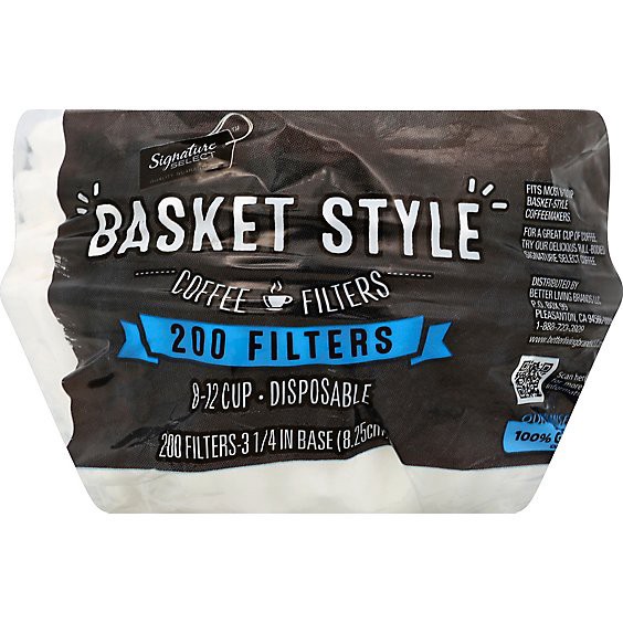 3-1/4 in (8.25 cm) base. Fits most 8-12 cup basket-style coffeemakers. Disposable. For a great cup of coffee, try our delicious, full-bodied Signature Kitchens coffees! Quality guaranteed. Our Promiseā¦
