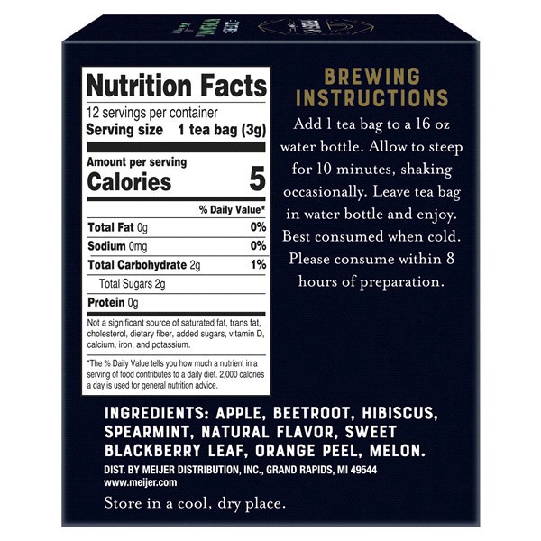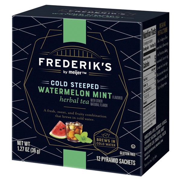 A beautiful blend of fresh, sweet and refreshing, Frederiks by Meijer Cold Steeped Watermelon Mint Herbal Tea perfects the balance of invigorating and comforting flavors. A combination of apple, beetr…