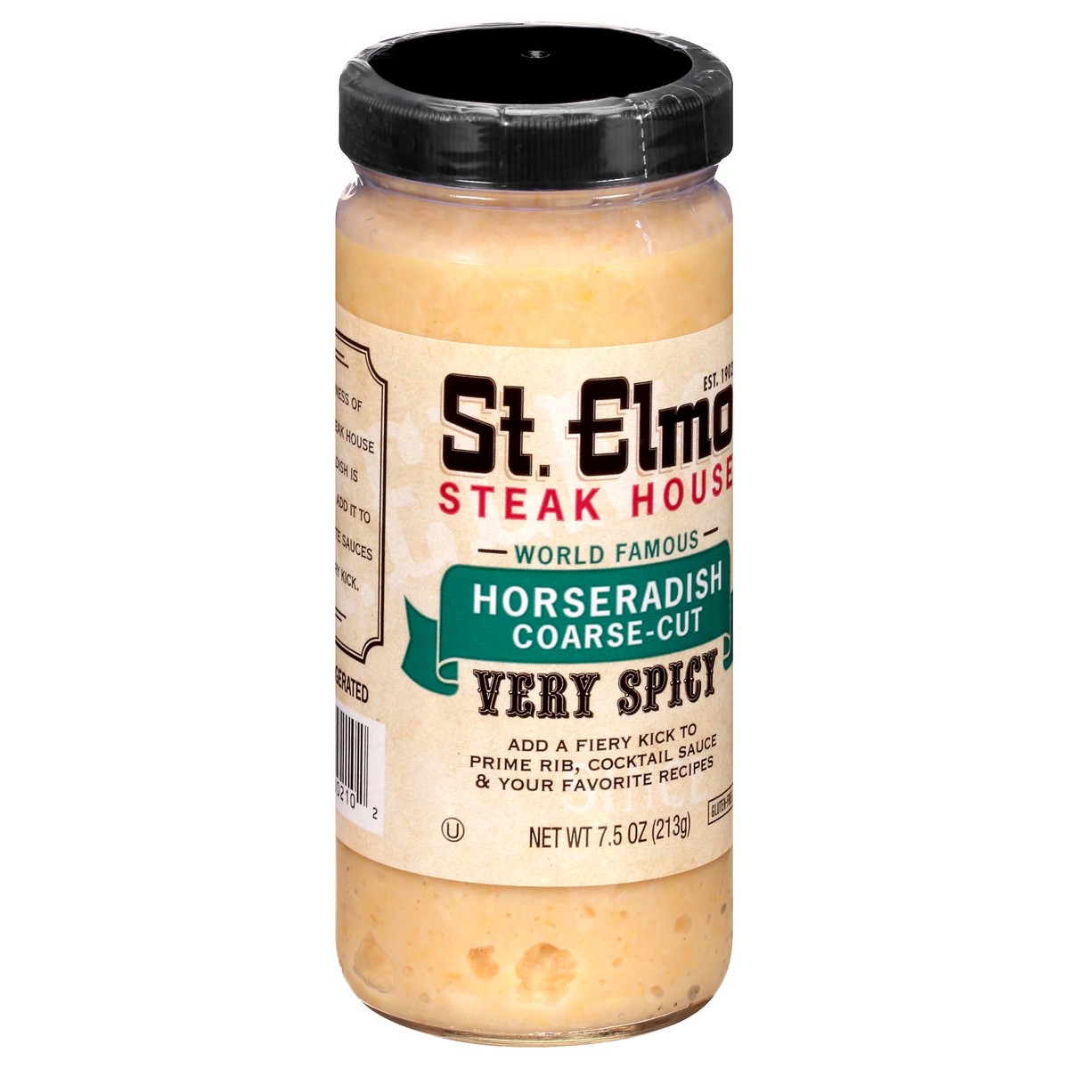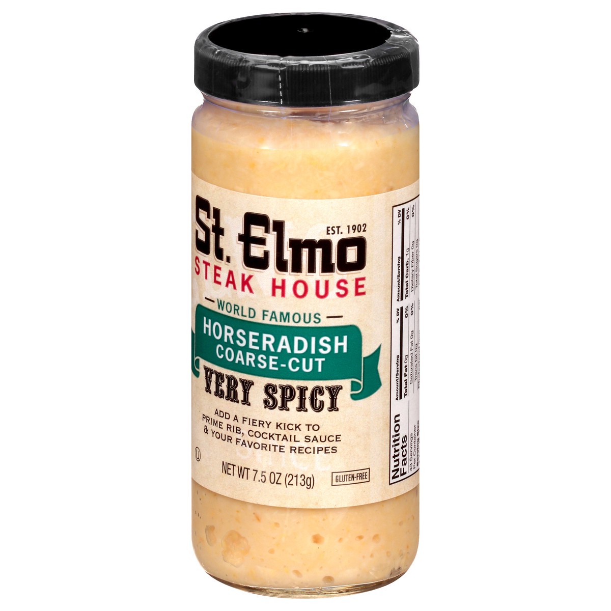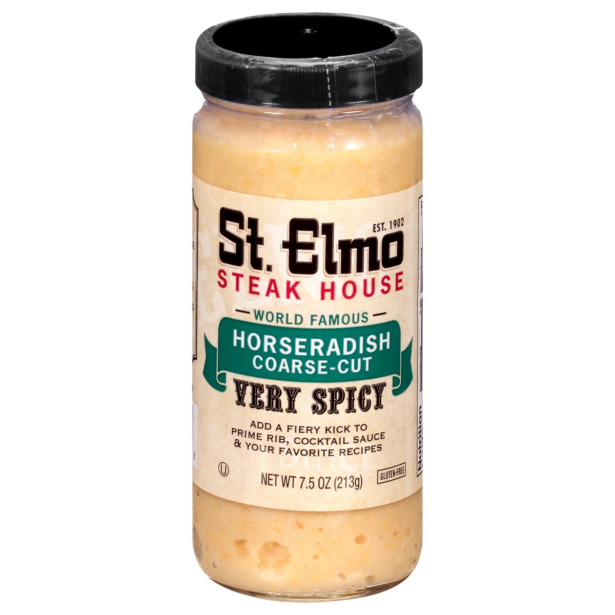 Gluten-free. Est. 1902. World famous. Add a fiery kick to prime rib, cocktail sauce & your favorite recipes. The spiciness of St. Elmo Steak House Horseradish is legendary. Add it to your favorite sau…