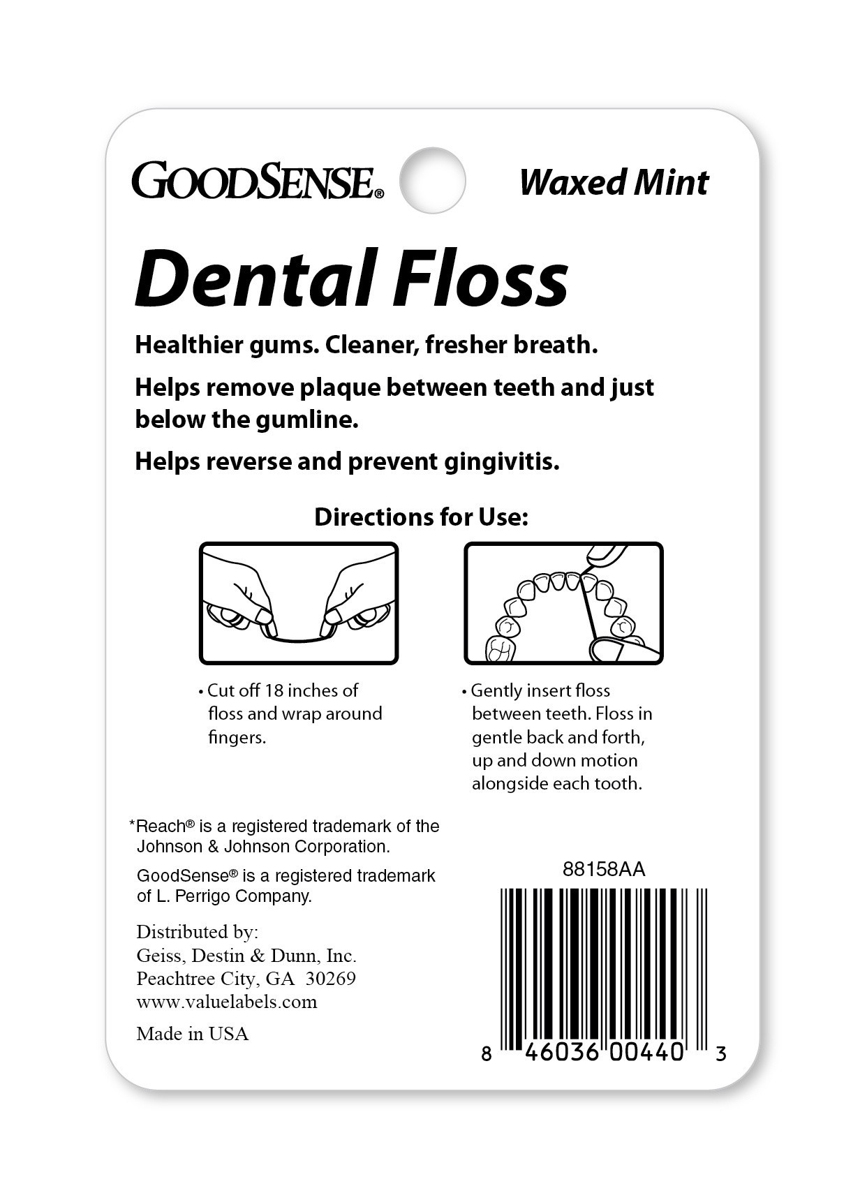 GOOD SENSE GoodSense Waxed Dental Floss, Plaque Control and Dental Care, Mint, 100 Yards