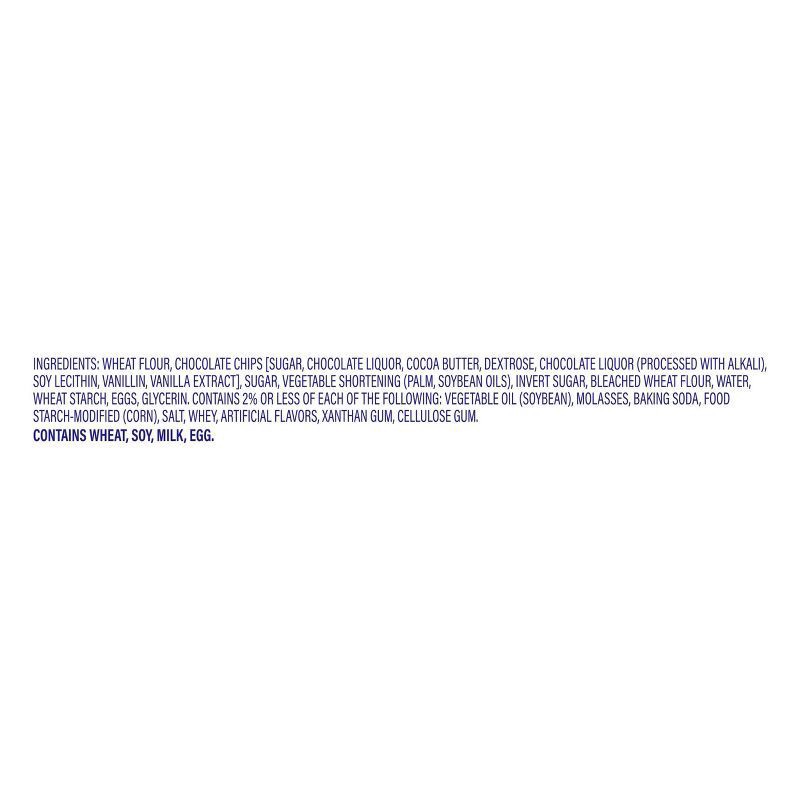 Wheat Flour, Chocolate Chips [Sugar, Chocolate Liquor, Cocoa Butter, Dextrose, Chocolate Liquor (Processed with Alkali), Soy Lecithin, Vanillin, Vanilla Extract], Sugar, Vegetable Shortening (Palm, So…