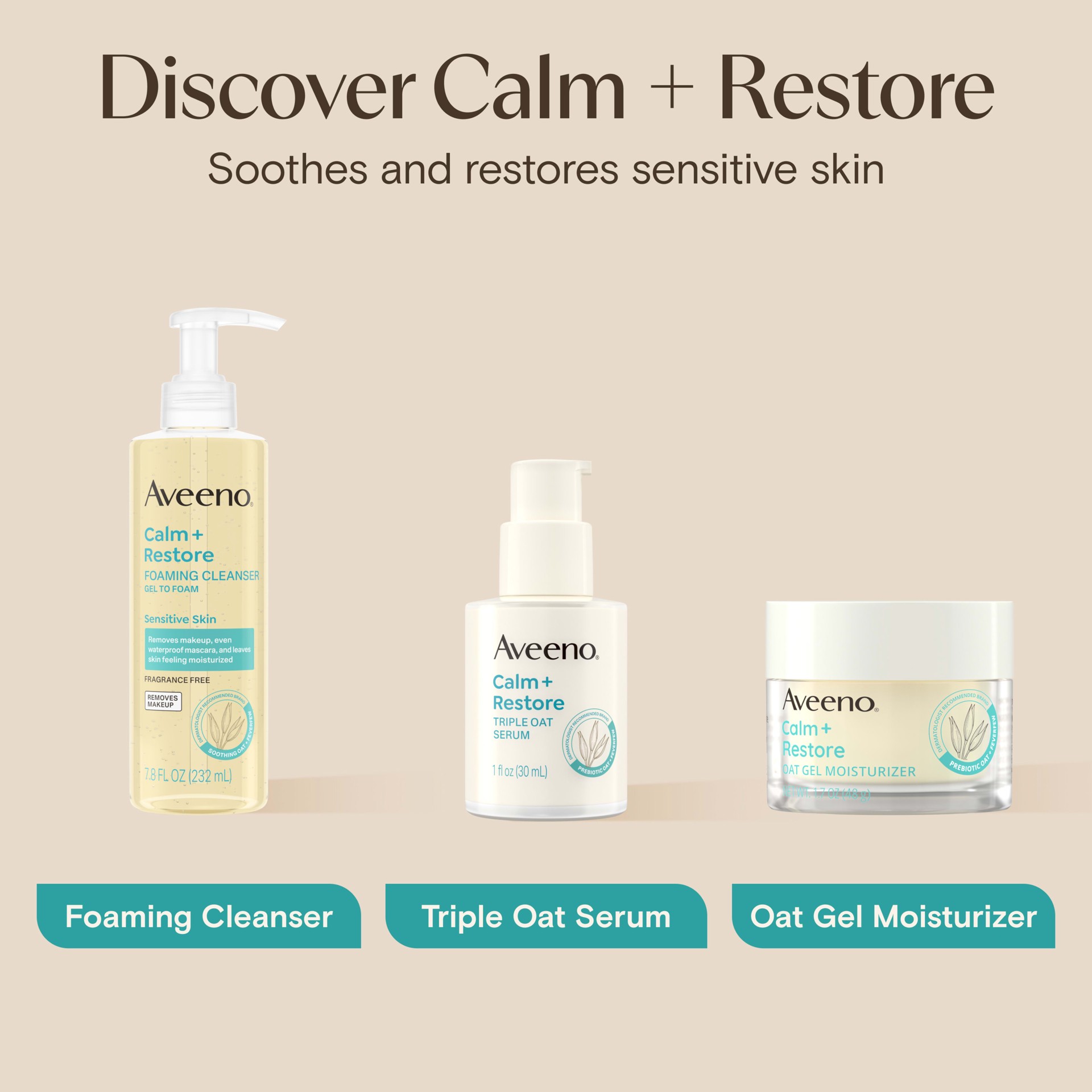 Gently cleanse and leave skin feeling soothed with the Aveeno Calm + Restore Foaming Cleanser. This gel-to-foam cleanser effectively removes makeup, including waterproof mascara, along with dirt, impu…