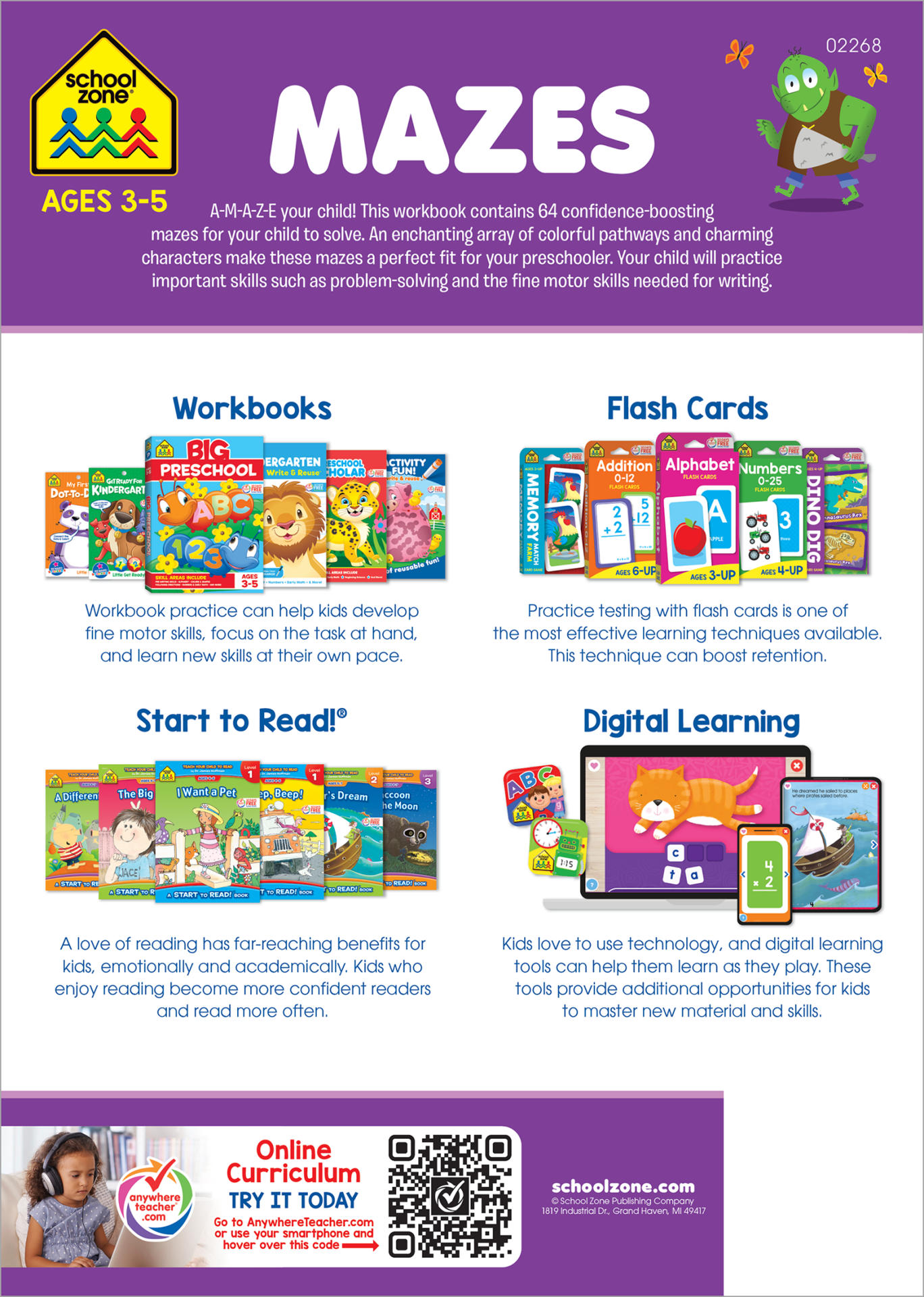 Getting from here to there can develop an amazing number of skills. Mazes boost focus, reasoning, problem-solving, and eye-hand coordination. Kids love them, and School Zones are some of the best! Thi…