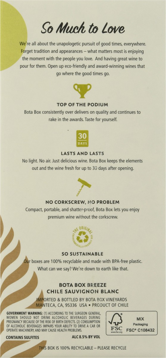 Bota Box Breeze wines are the perfect sidekick for wherever life takes you. Enjoy the full flavor of traditional wines with less calories and sugar, it''s a delicious way to balance your active lifest…