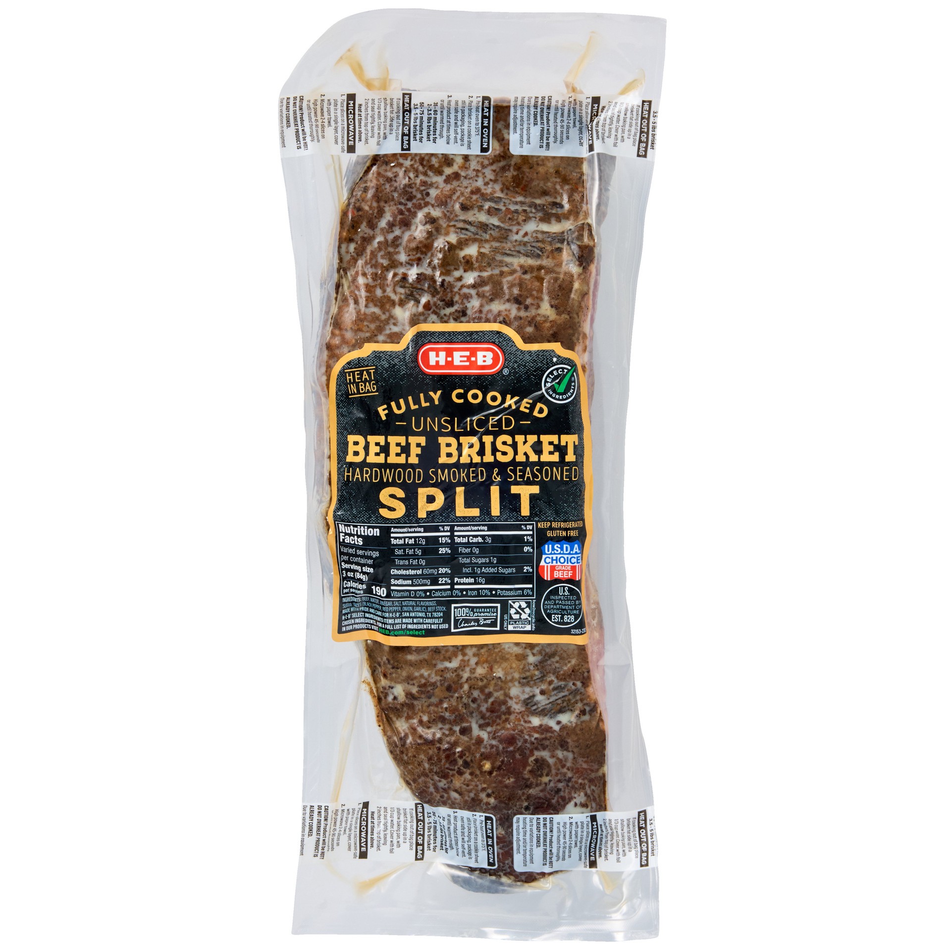 Weighing about 3lbs – 5 lbs on average, this split beef brisket from H-E-B is conveniently fully cooked and unsliced. Its mouth-watering flavor comes from being seasoned and then naturally hardwood sm…