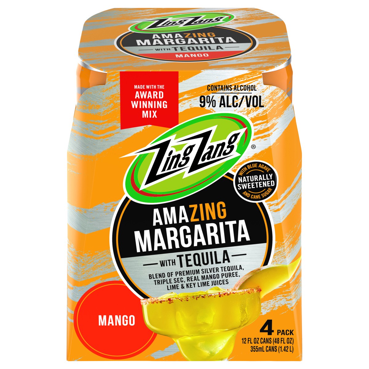 Zing Zang Amazing Mango Margarita with Tequila, Alcoholic Ready-to-Drink Canned Cocktails, 12 Fl Oz Can (Pack of 4)