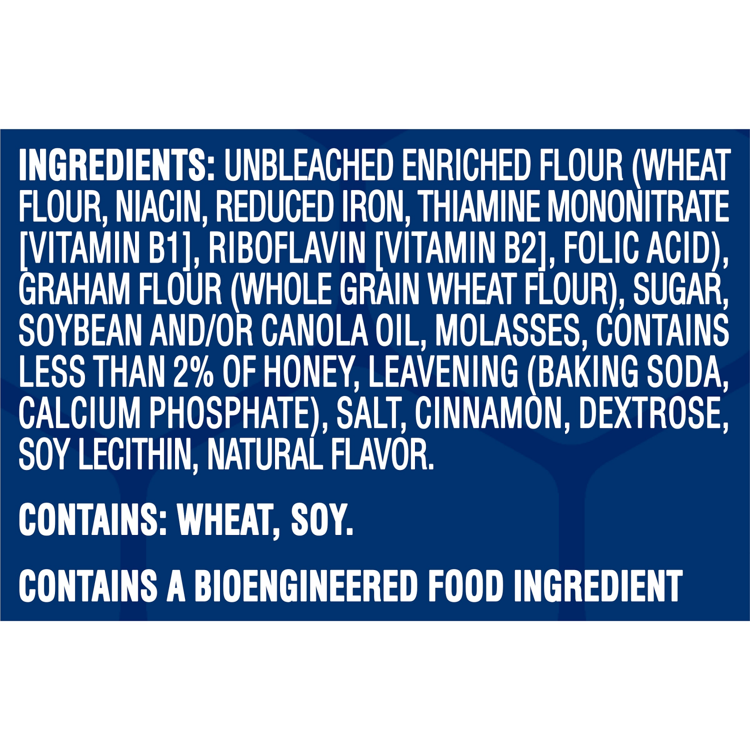 Unbleached Enriched Flour (Wheat Flour, Niacin, Reduced Iron, Thiamine Mononitrate [Vitamin B1], Riboflavin [Vitamin B2], Folic Acid), Graham Flour (Whole Grain Wheat Flour), Sugar, Soybean and/or Can…