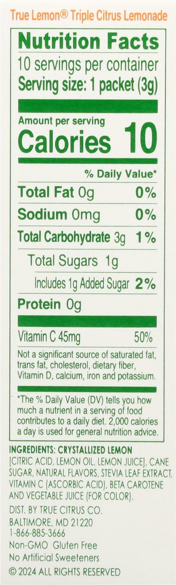 True Lemon Triple Citrus Lemonade Drink Mix 10 - 0.11 oz Packets