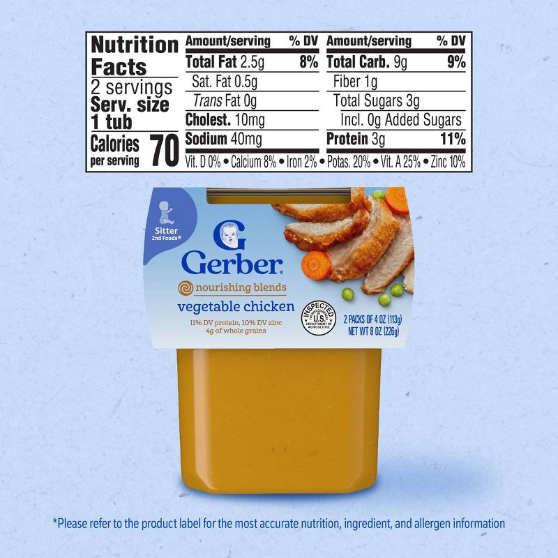 Gerber Stage 2 Baby Food, Vegetable Chicken Puree Tubs are a premium choice for your child's early stages. Crafted to help support their diverse diet, along with meeting the busy lifestyle needs of ca…