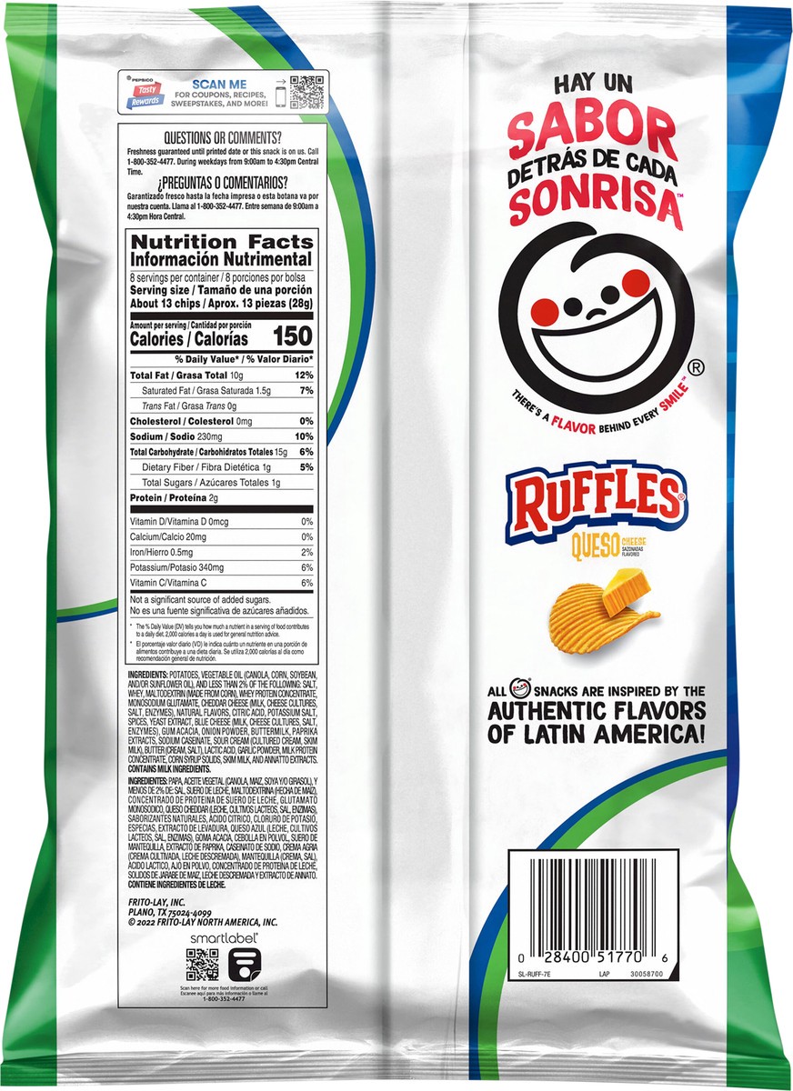 Ruffles Potato Chips, Cheese Flavored - 8 oz