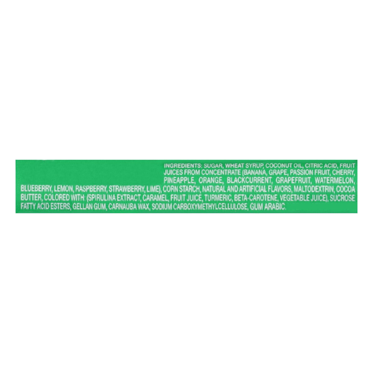 sugar, glucose syrup, fruit juices from concentrate (raspberry, watermelon, strawberry, pineapple, orange, lemon, blueberry, grape, passionfruit, blackcurrant, lychee, lime, banana, cherry) (2%), coco…