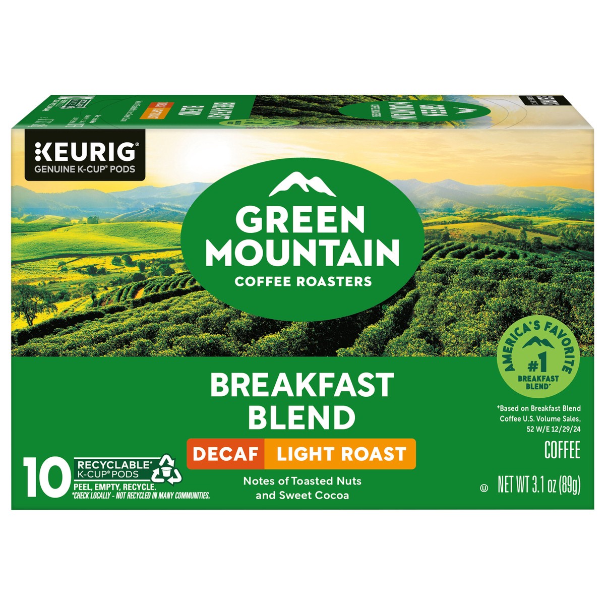 Green Mountain Coffee Roasters Breakfast Blend Decaf Keurig Single-Serve K-Cup pods, Light Roast Coffee, 10 Count
