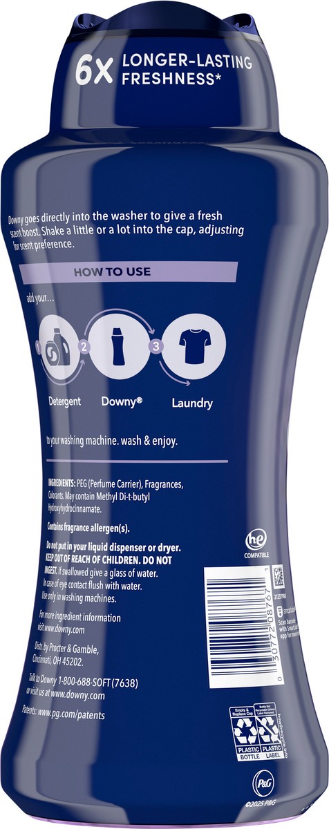 Downy Infusions go directly into the washer to give a fresh scent boost. Start with half a cap in each load and adjust for scent preference. HE compatible. www.downy.com. how2recycle.info. SmartLabel:…