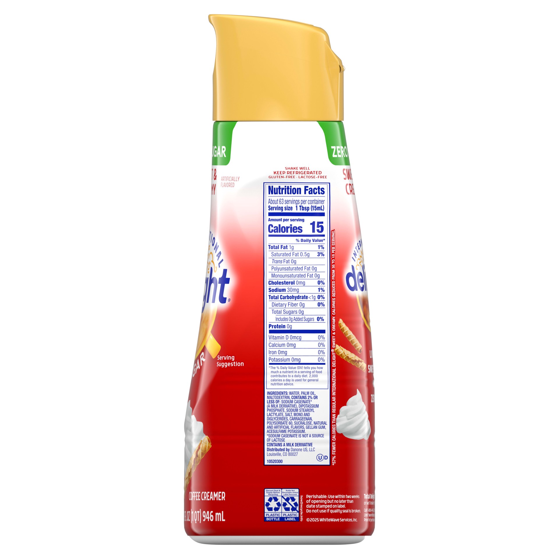International Delight Coffee Creamer, Zero Sugar Sweet & Creamy, Refrigerated Flavored Creamer, 32 fl oz Bottle