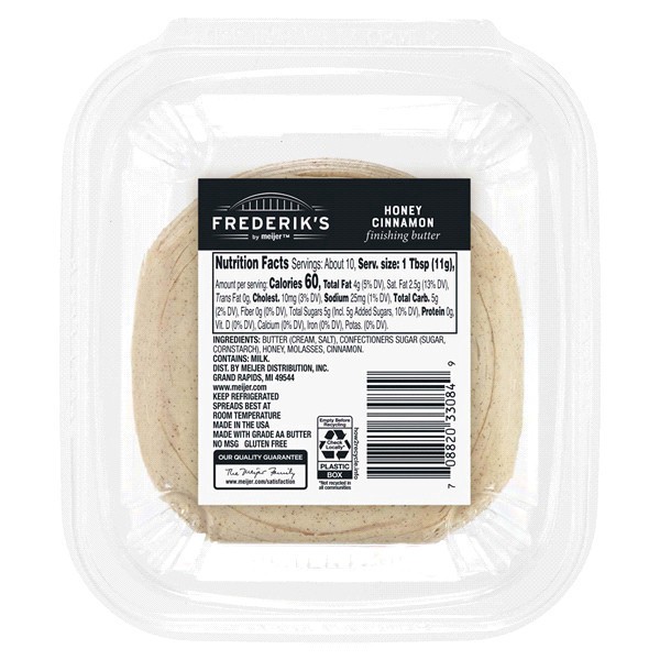 A beautiful blend of honey, cinnamon and molasses, Frederiks by Meijer Honey Cinnamon Finishing Butter introduces a sweet twist to your favorite meals. A decadent addition to popcorn, steamed carrots,…