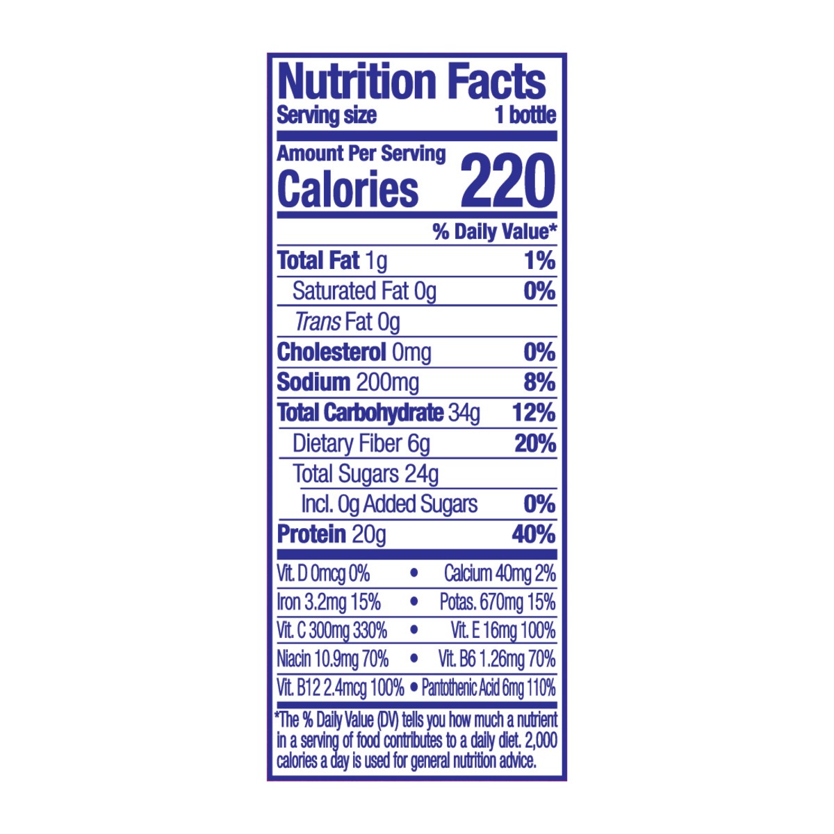 Water, Apple Juice from Concentrate (Water, Apple Juice Concentrate), Strawberry Puree, Banana Puree, Orange Pulp, Isolated Soy Protein, Lemon Juice, Inulin, Blueberry Puree, Fruit and Vegetable Juice…