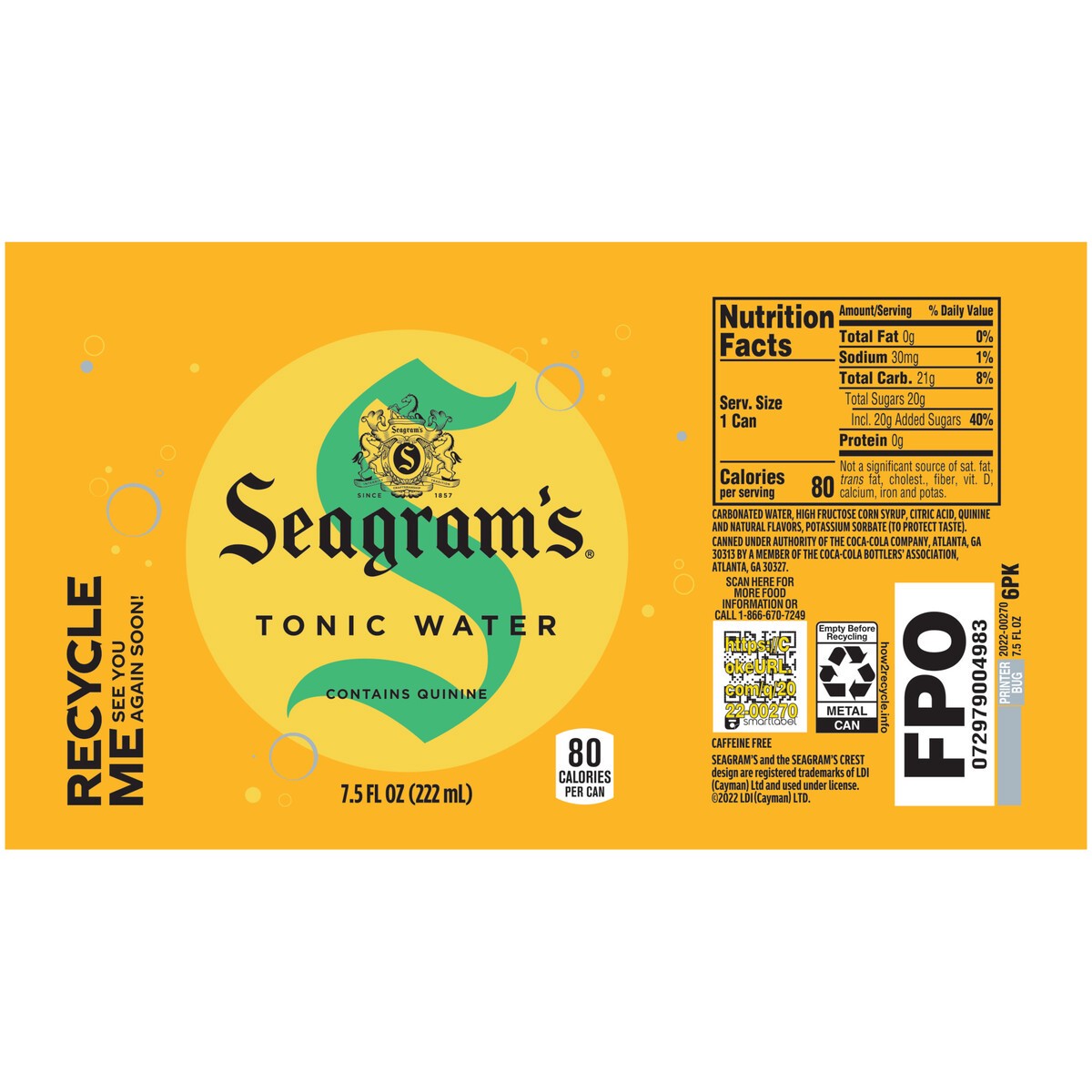 Crisp and clean, the Seagrams brand has been delighting sophisticated adults with its ginger ale and mixers since 1857. Naturally flavored, Seagrams Tonic Water is caffeine free, so you can enjoy it a…