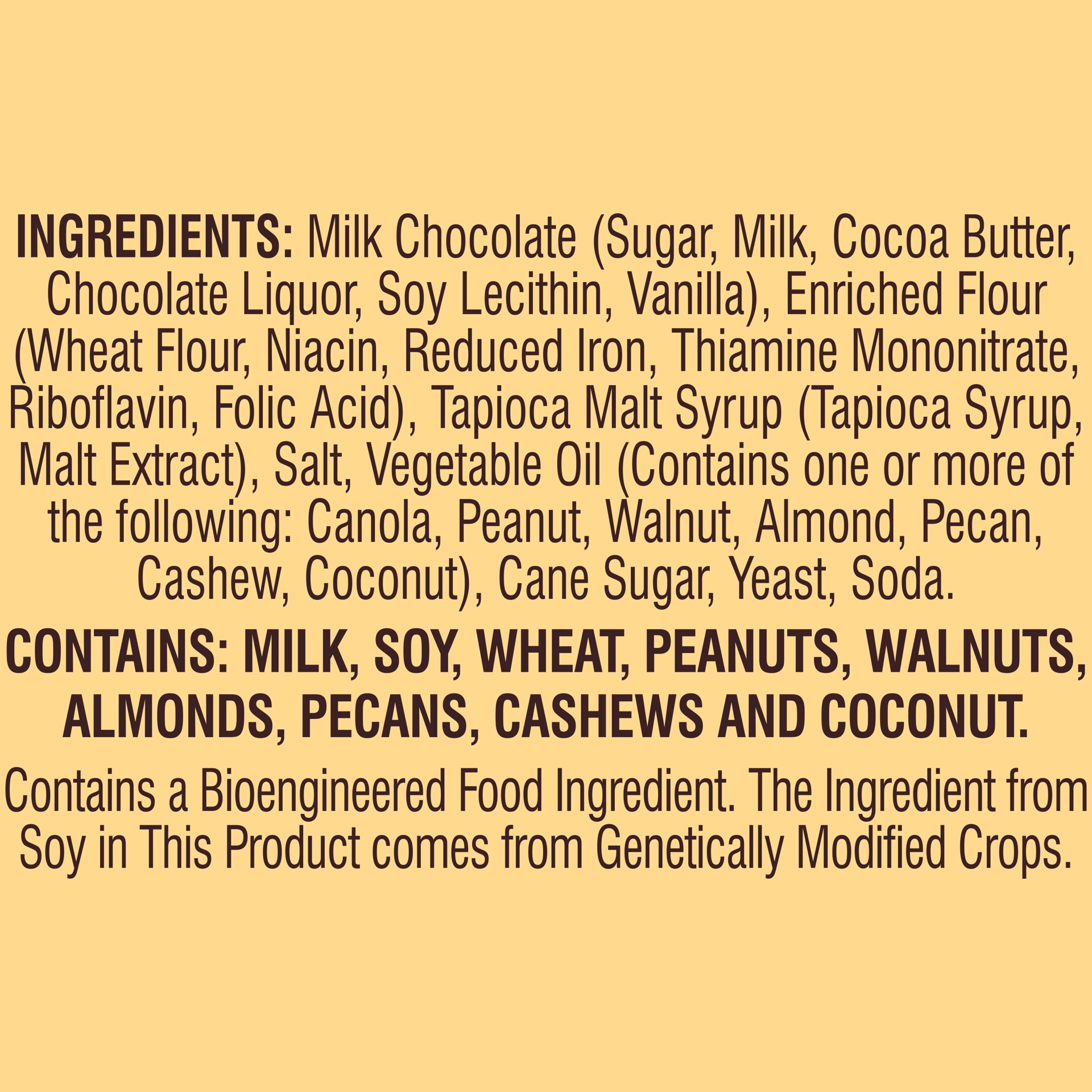 INGREDIENTS: MILK CHOCOLATE (SUGAR, MILK, COCOA BUTTER, CHOCOLATE LIQUOR, SOY LECITHIN, VANILLA), ENRICHED FLOUR (WHEAT FLOUR, NIACIN, REDUCED IRON, THIAMINE MONONITRATE, RIBOFLAVIN, FOLIC ACID), TAPI…