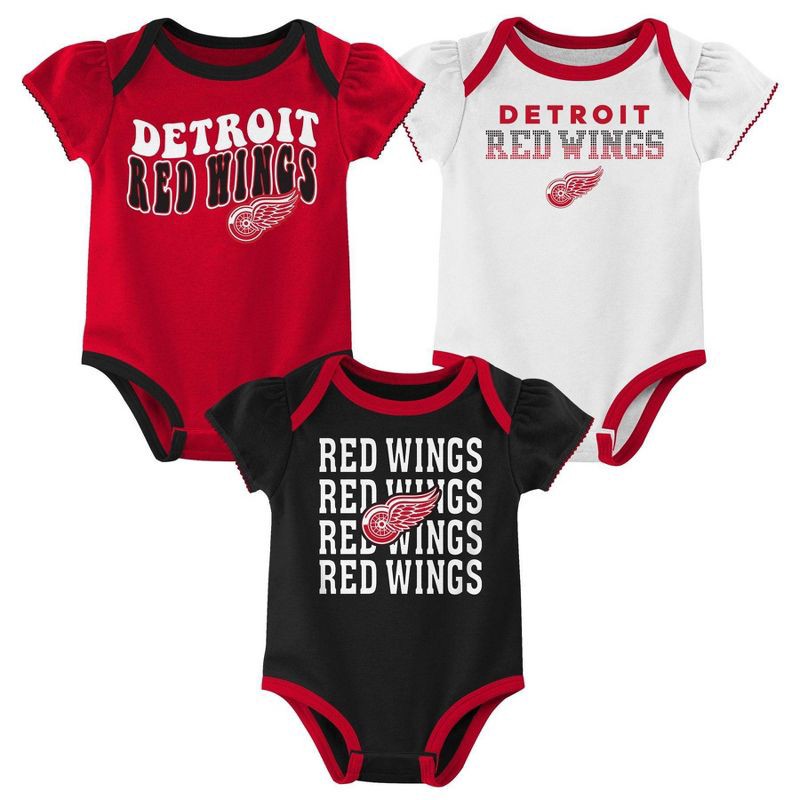 NHL Detroit Red Wings Infant Girls' 3pk Bodysuits - 3-6M