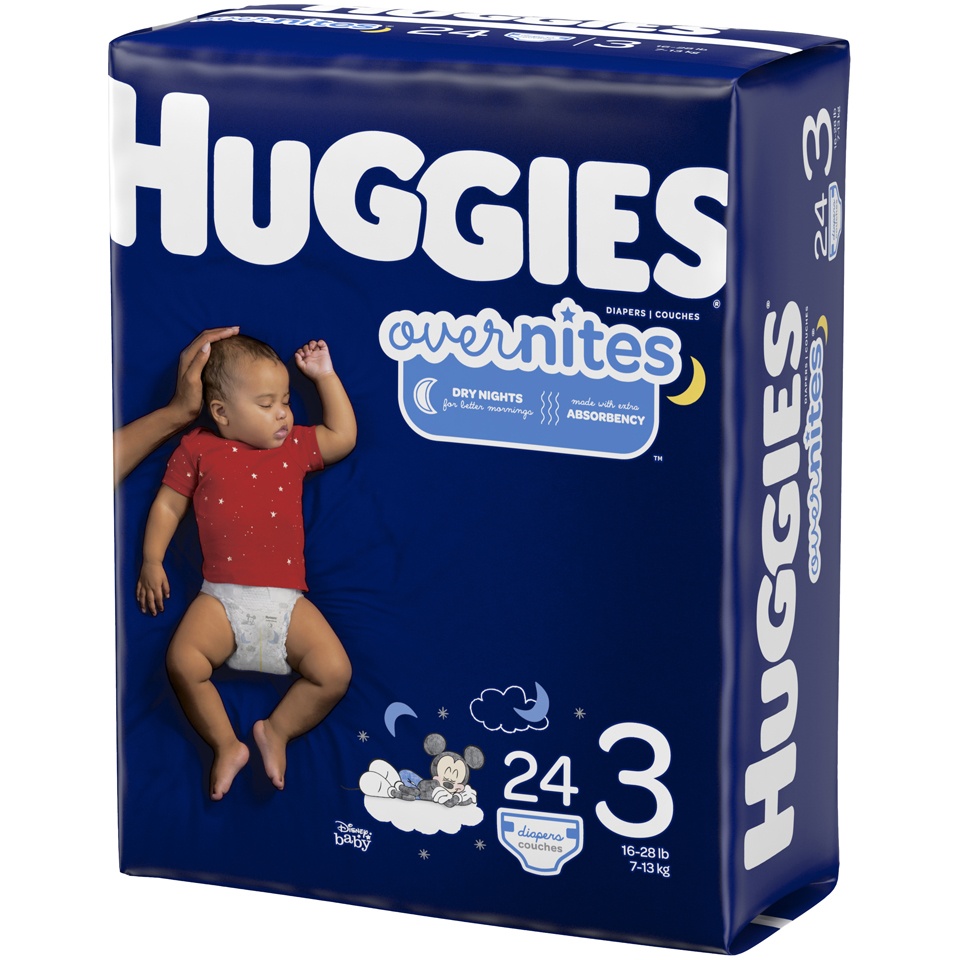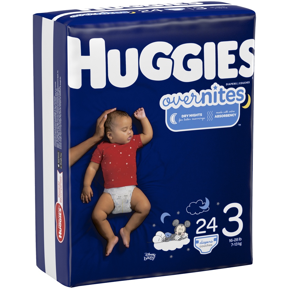 Huggies Overnites Nighttime Baby Diapers, Size 3 (16-28 lbs), 24 Ct