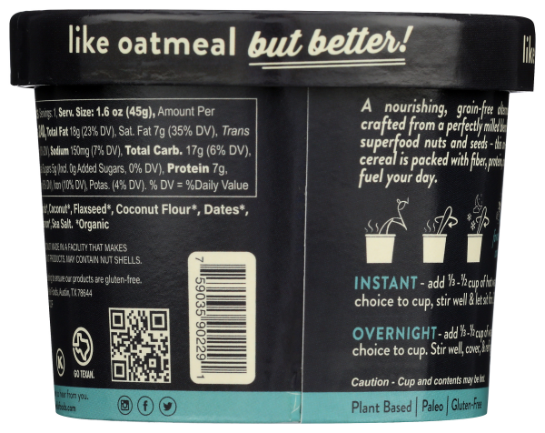 A nourishing oatmeal alternative. Hand-milled. Almonds, Chia, coconut & flax seeds. Grain-free. A nourishing, grain-free alternative to oatmeal crafted from a perfectly milled blend of hearty organic …