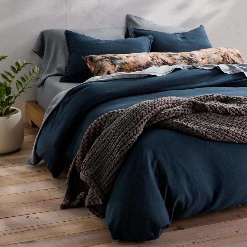 Full/Queen Heavyweight Linen Blend Duvet Cover and Sham Set Dark Mineral Blue - Casaluna™