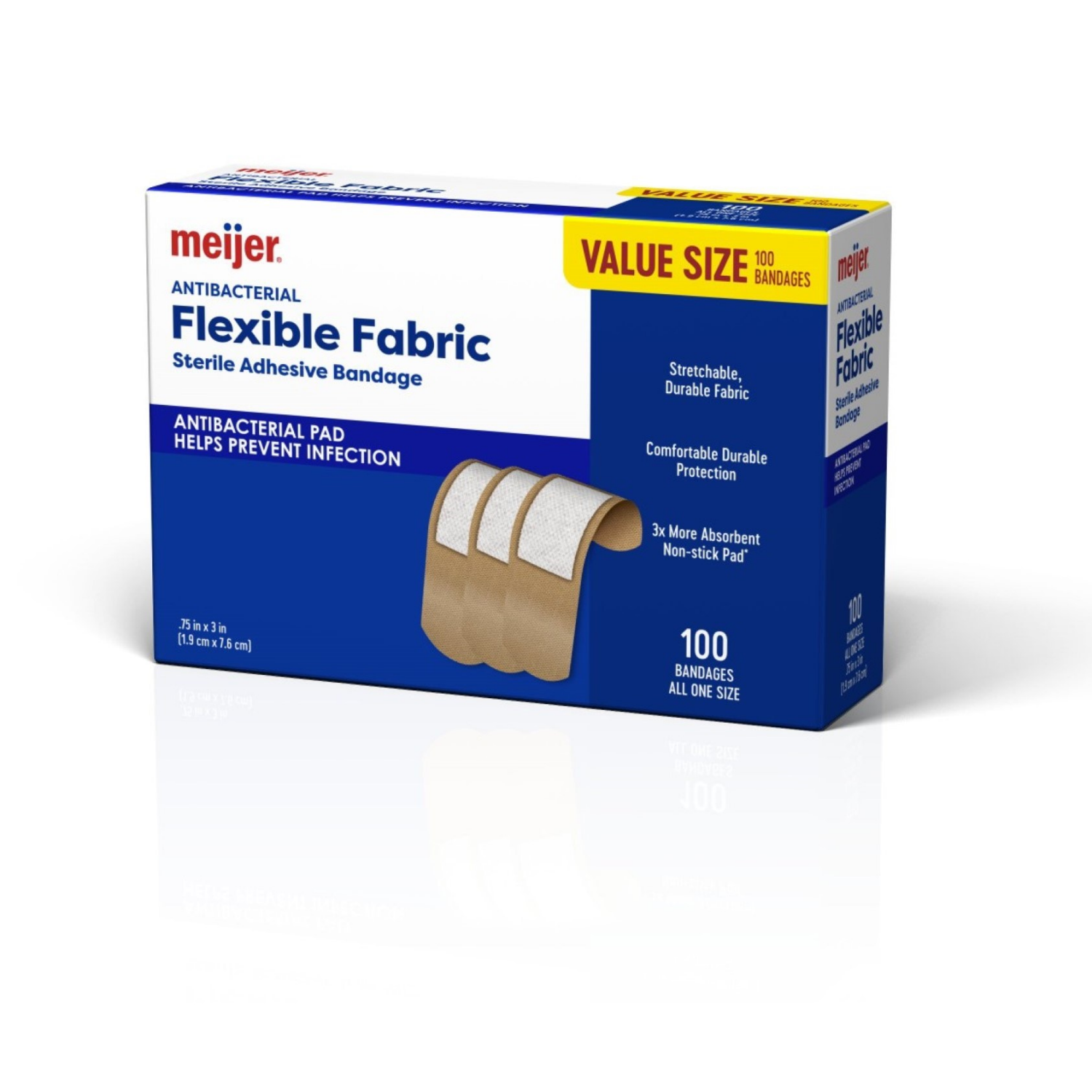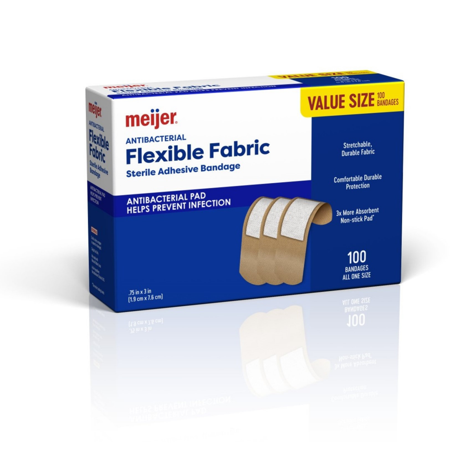 Meijer Antibacterial Flexible Fabric Adhesive Bandages, 0.75 In X 3 In, 100 Ct