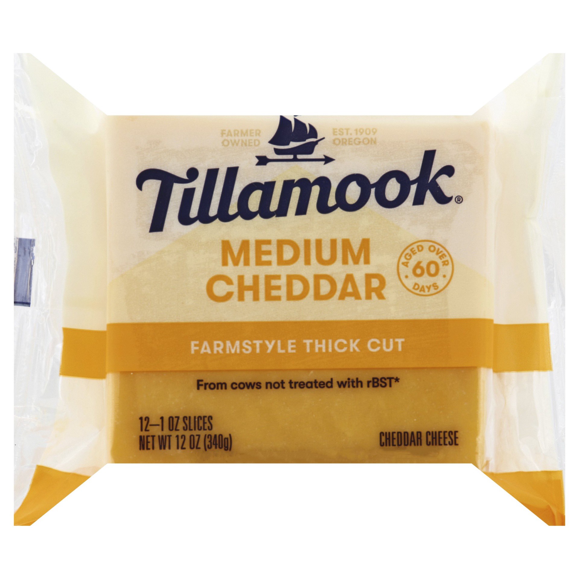 - One 12 ct package of Tillamook Farmstyle Medium Cheddar Cheese Slices