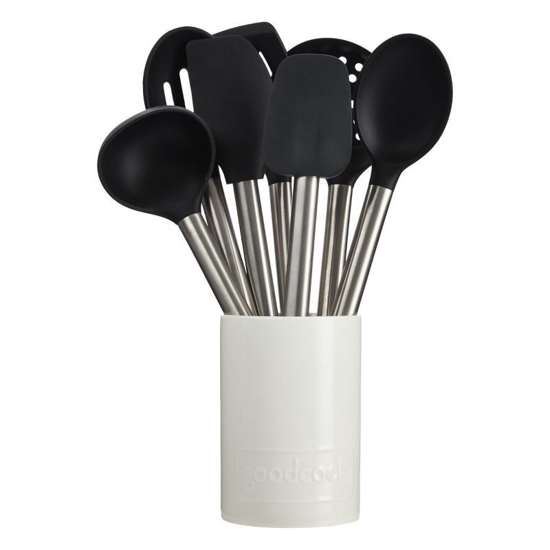 GoodCook Ready 8pc Silicone Tool and Crock Set: Ladle, Spatula, Slotted Turner, Utensil Holder, Dishwasher-Safe