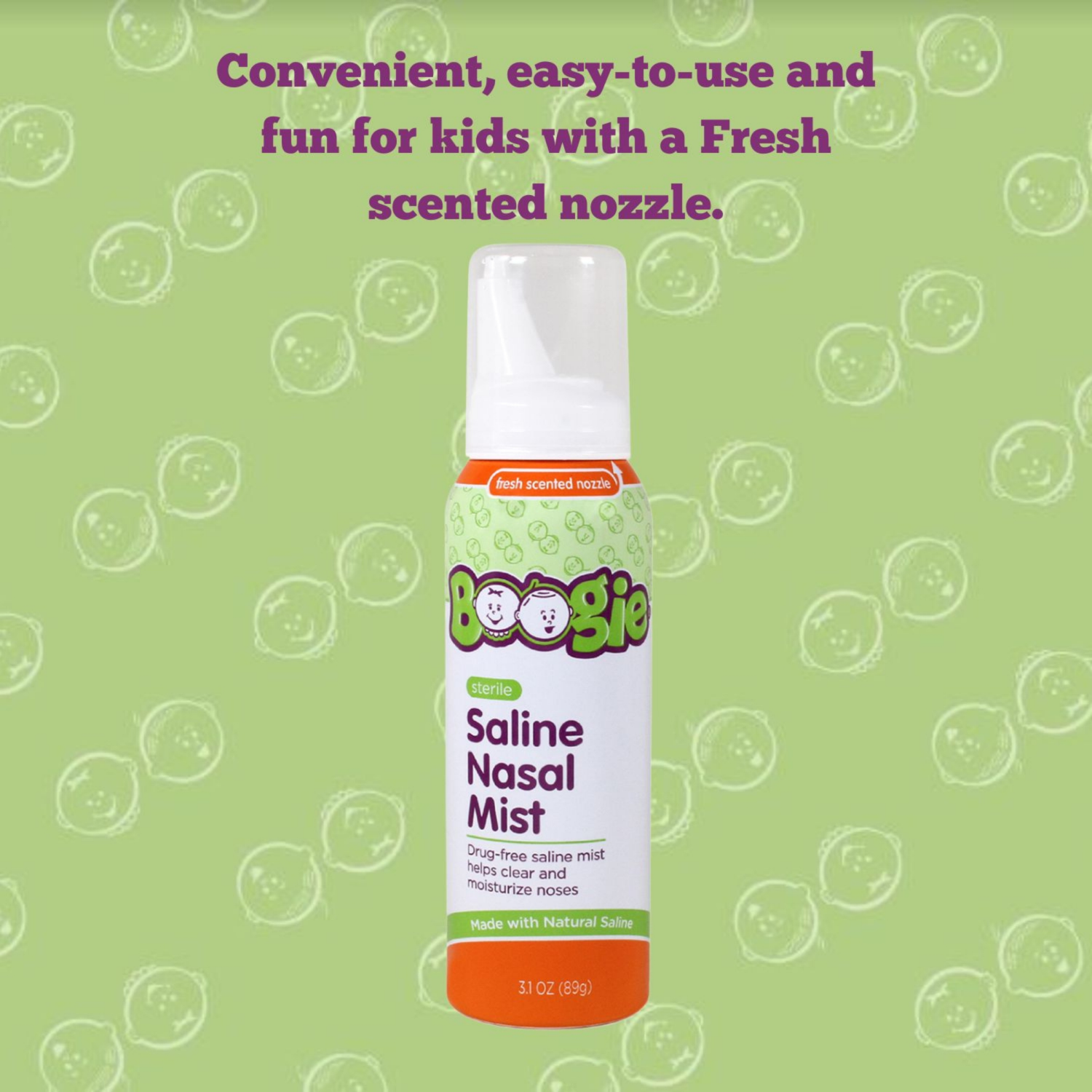 Fresh scented nozzle. Drug-free saline mist helps clear and moisturize noses. Sterile saline mist. Fun scented nozzle. Non-medicated. Gentle enough for all ages. Helps flush dust, pollen and congestio…
