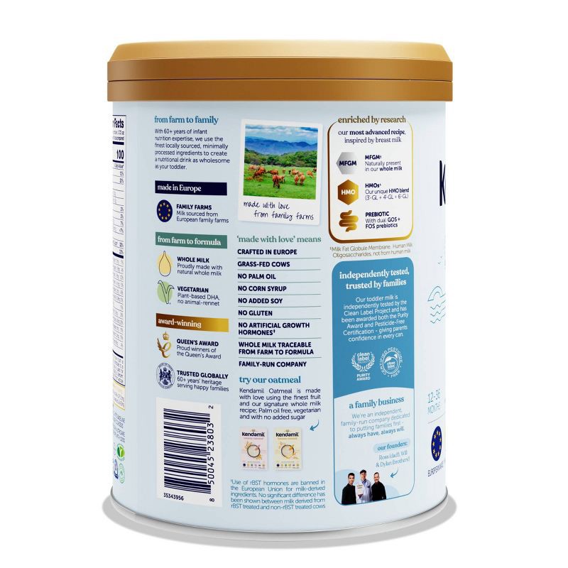 - CRAFTED IN EUROPE: Every drop of whole milk in Kendamil Toddler Formula is sourced from family farms in Europe.