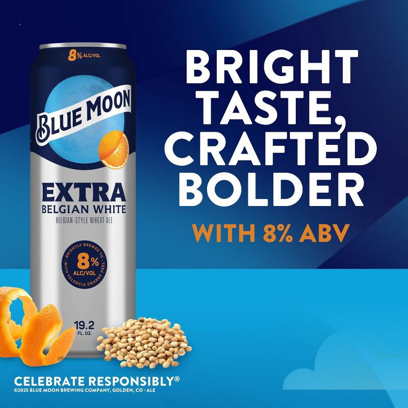 - Classic Blue Moon Belgian Ale flavor brewed to a higher 8.0% ABV
