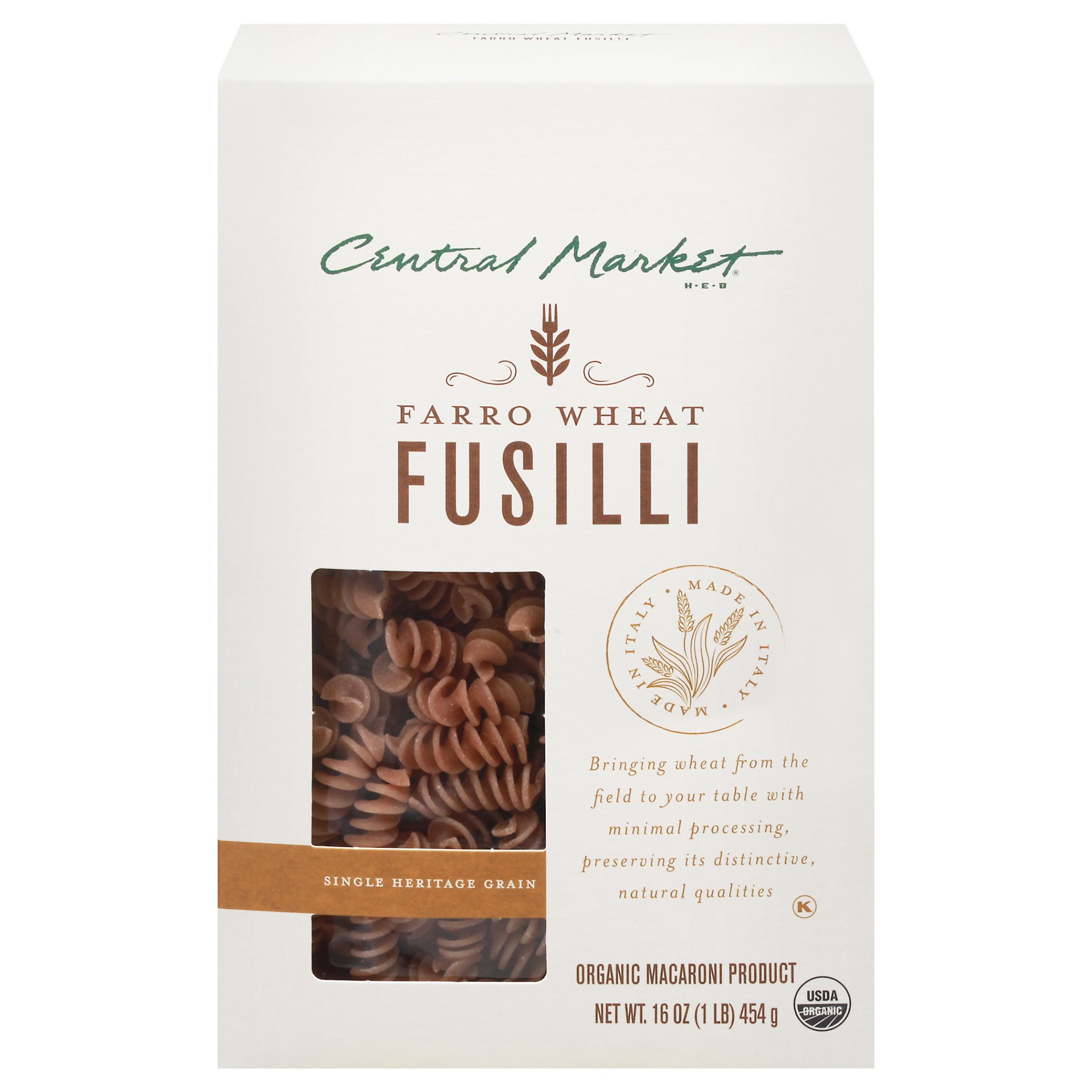 Central Market Organic Single Heritage Grain Farro Wheat Fusilli Pasta