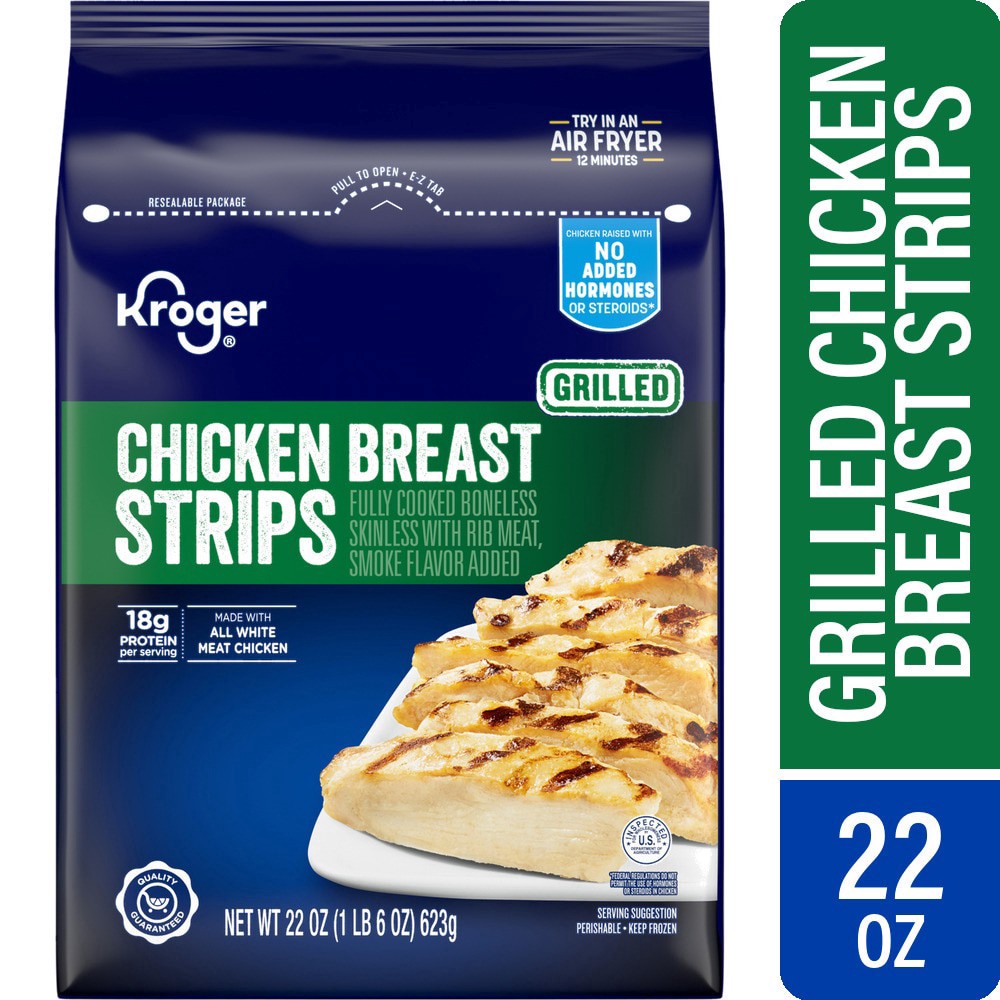 Kroger® Fully Cooked Frozen Grilled Chicken Breast Strips spice up mealtimes in a jiffy! With 19g of protein per serving, these strips are a great addition to salads, wraps, and stir-fries. Coming fro…