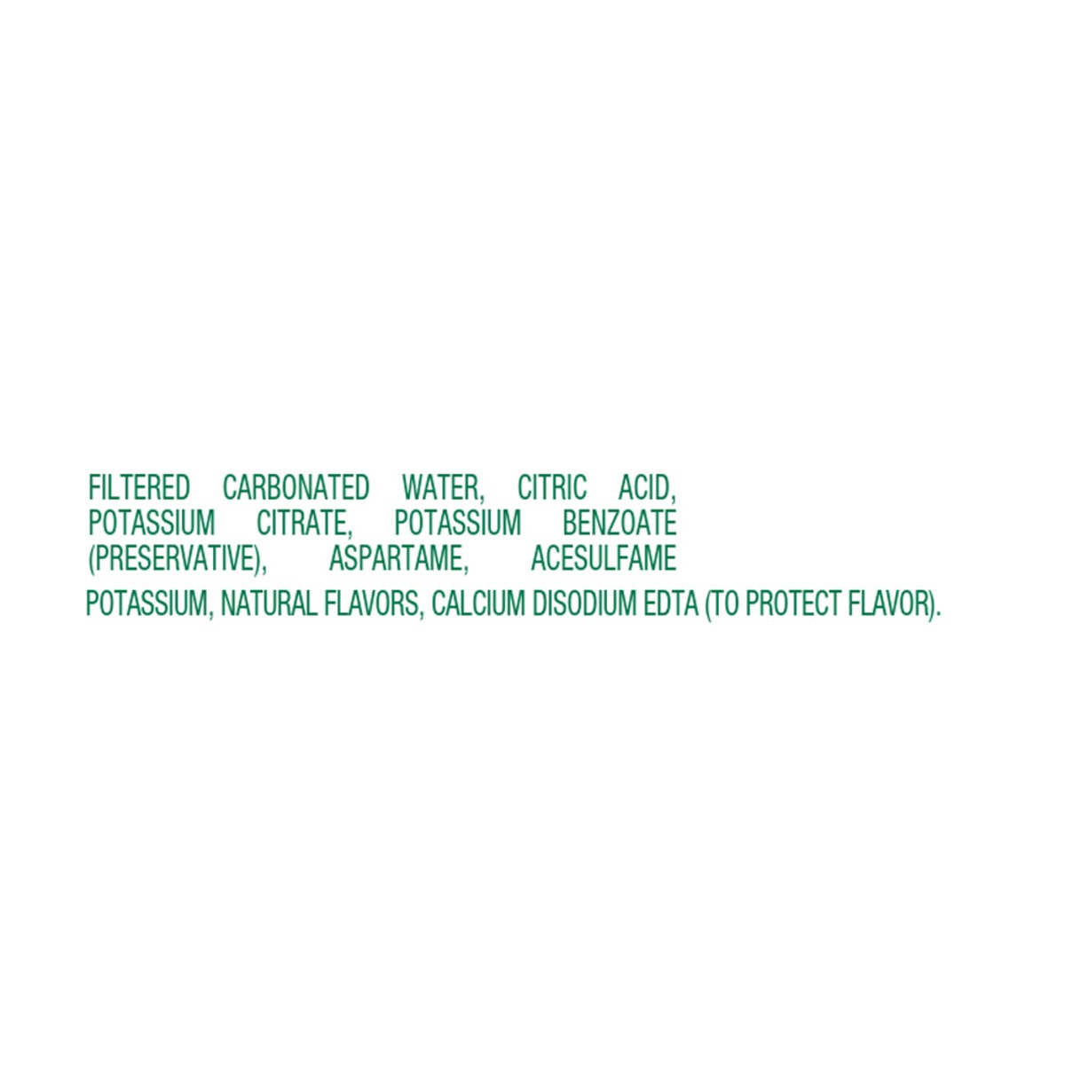 Filtered Carbonated Water, Citric Acid, Potassium Citrate, Potassium Benzoate (Preservative), Aspartame, Acesulfame Potassium, Natural Flavors, Calcium Disodium EDTA (to Protect Flavor).