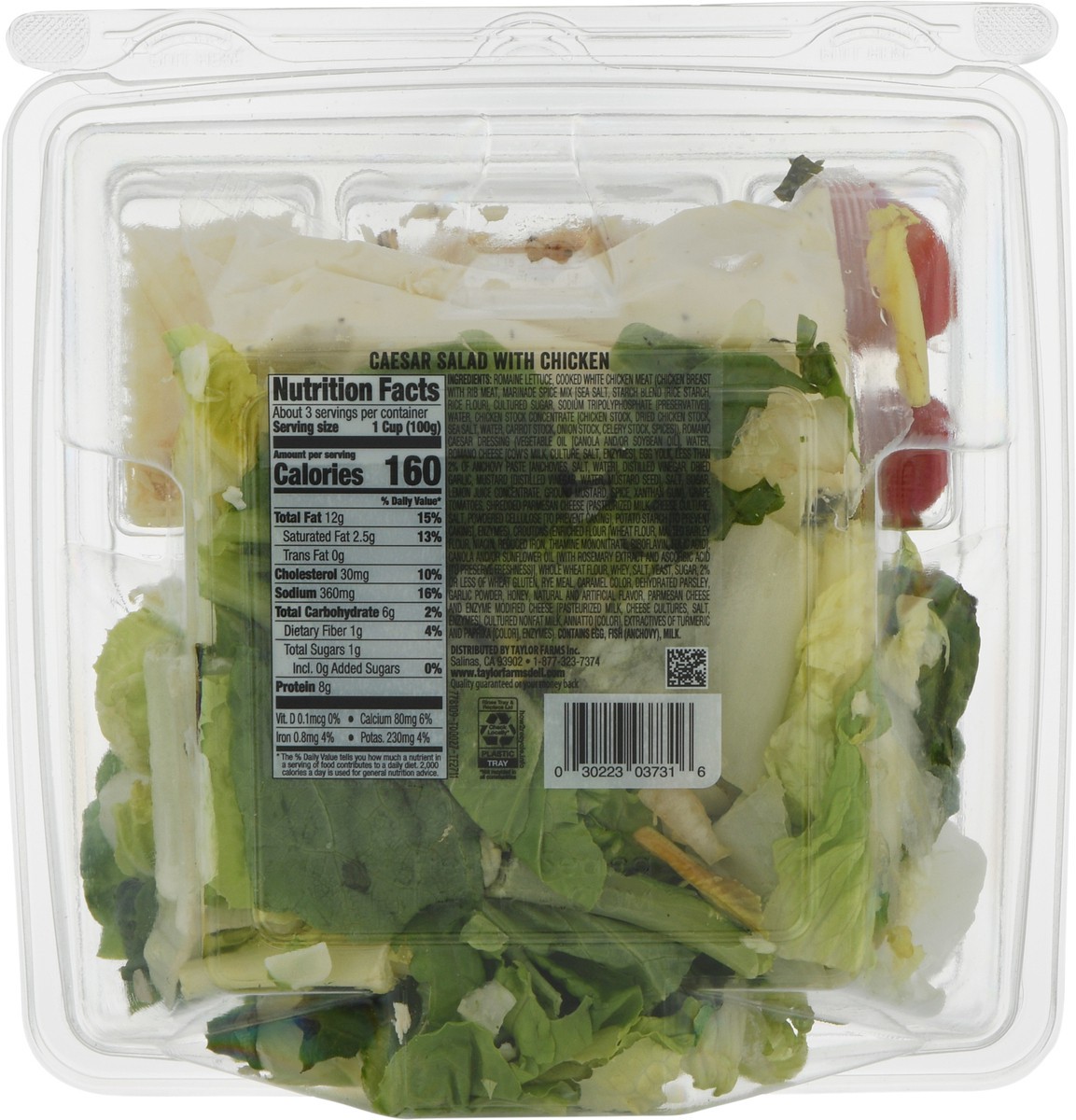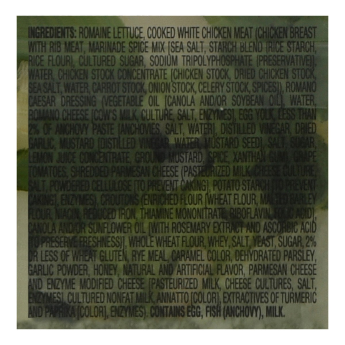 Romaine Lettuce, Cooked White Chicken Meat (Chicken Breast with Rib Meat, Marinade Spice Mix [Sea Salt, Starch Blend (Rice Starch, Rice Flour), Cultured Sugar, Sodium Tripolyphosphate (Preservative)] …