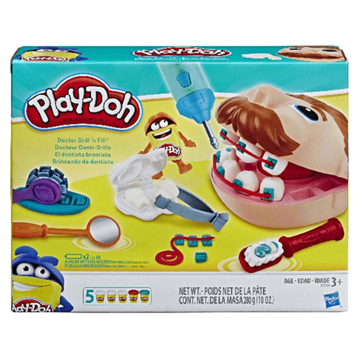 Doctor, drill n fill that patient before he gets a toothache Even if it can be a little scary to go to the dentist, kids can take control and play pretend dentist with this PlayDoh playset. They can m…