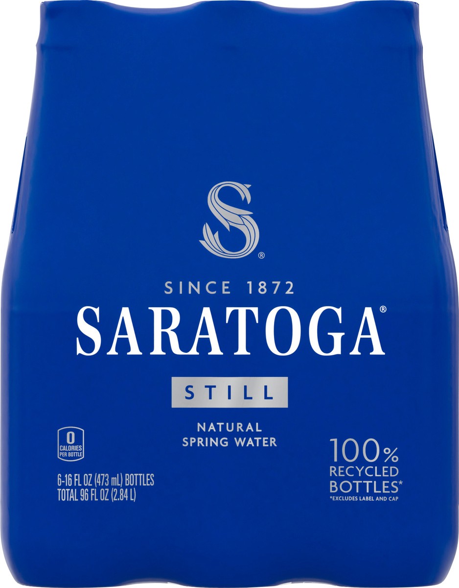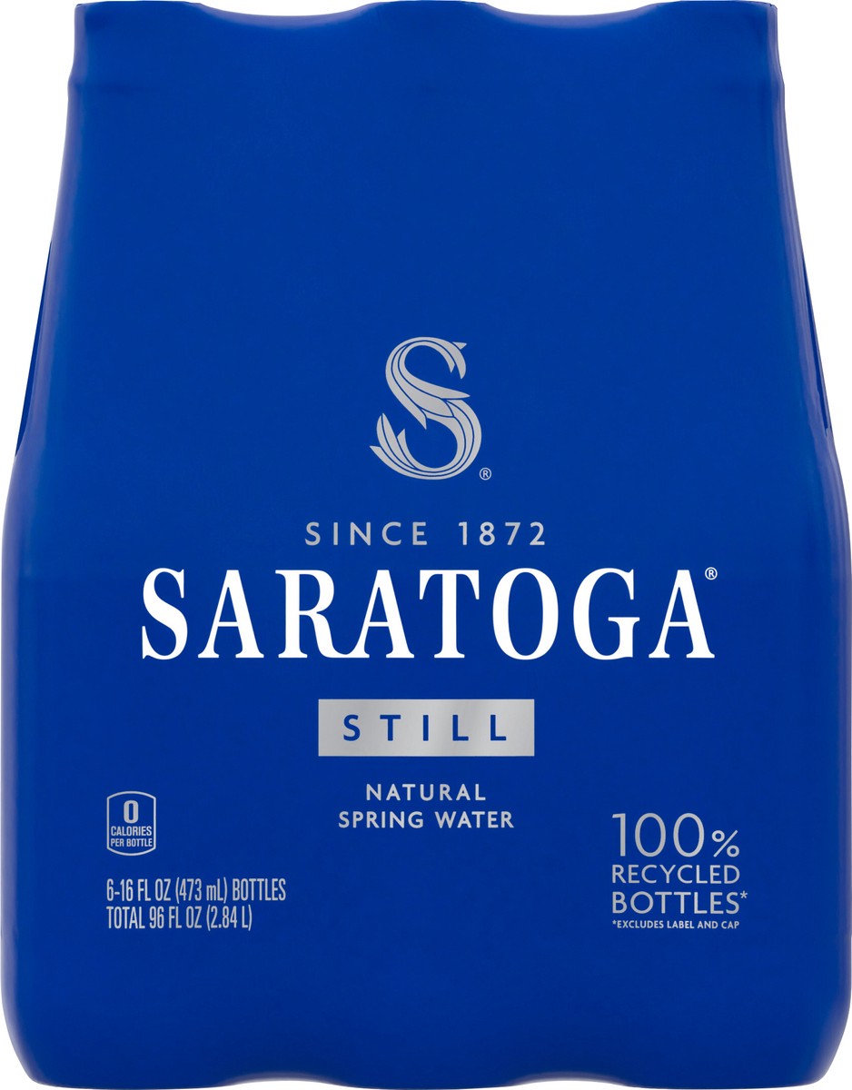 Saratoga Still Spring Water, Recycled PET Bottle, 16 oz, Pack of 6