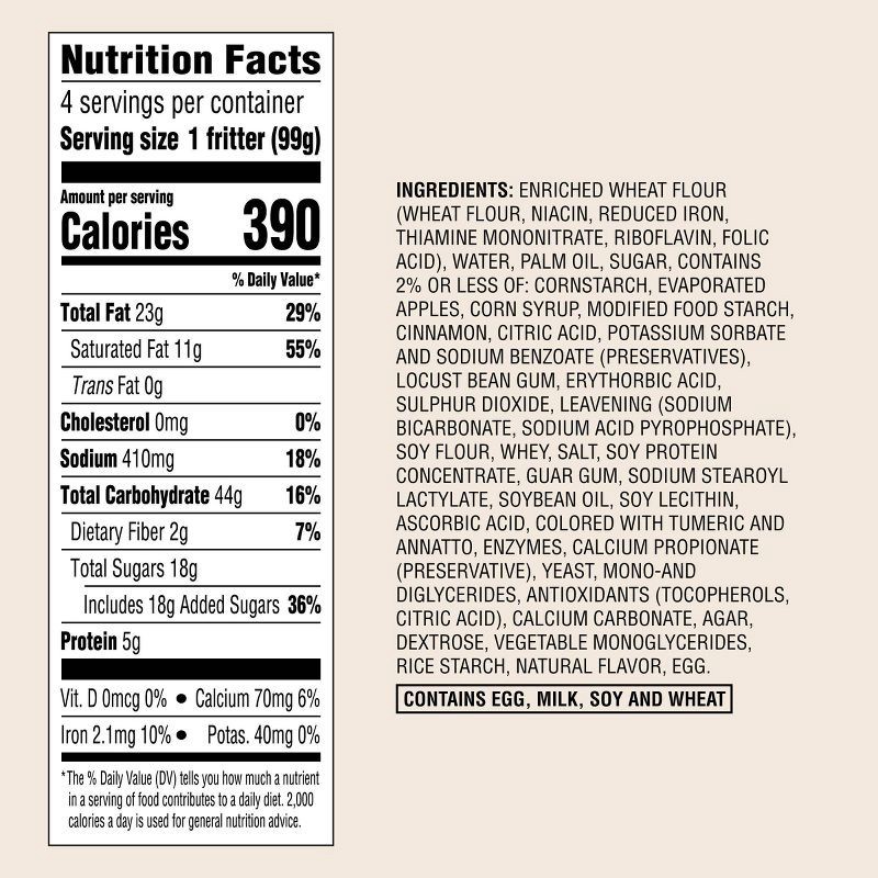 - Pack of 4 apple fritters gives you enough for multiple mornings