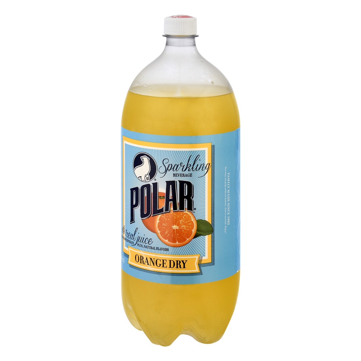 Sparkling beverage with real juice from concentrate plus, natural flavors. Family made since 1882. You may see pulp settle on bottom, that is normal. Enjoy! (hashtag)PolarDry. Facebook. Twitter.