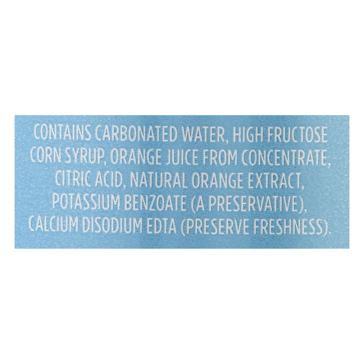 Contains Carbonated Water, High Fructose Corn Syrup, Orange Juice from Concentrate, Citric Acid, Natural Orange Extract, Potassium Benzoate (a Preservative), Calcium Disodium EDTA (Preserve Freshness)…