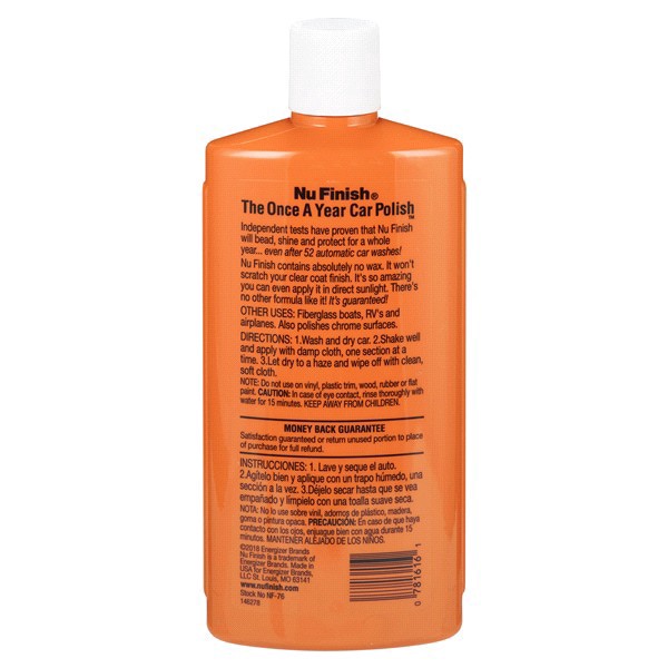 No rubbing. No buffing. Independent tests have proven that Nu Finish will bead, shine and protect for a whole year - even after 52 automatic car washes! Nu Finish contains absolutely no wax. It won't …